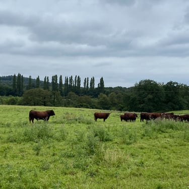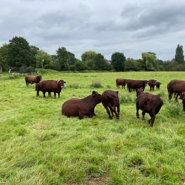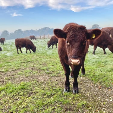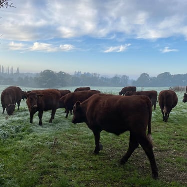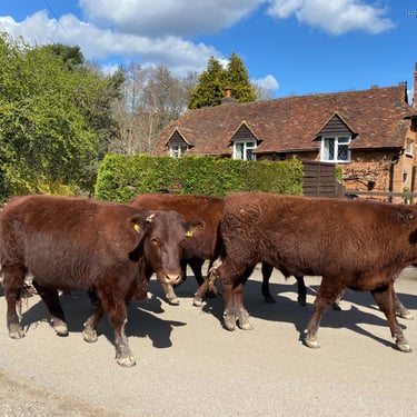 Our herd has been grazing several large fields in the foothills of the Chantries, near Shalford, for over a decade. They are cared for by our small team, who take pride in what they do!