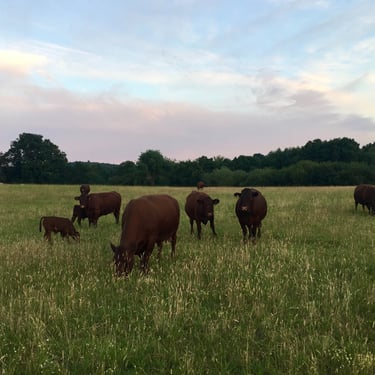 Our herd has been grazing several large fields in the foothills of the Chantries, near Shalford, for over a decade. They are cared for by our small team, who take pride in what they do!